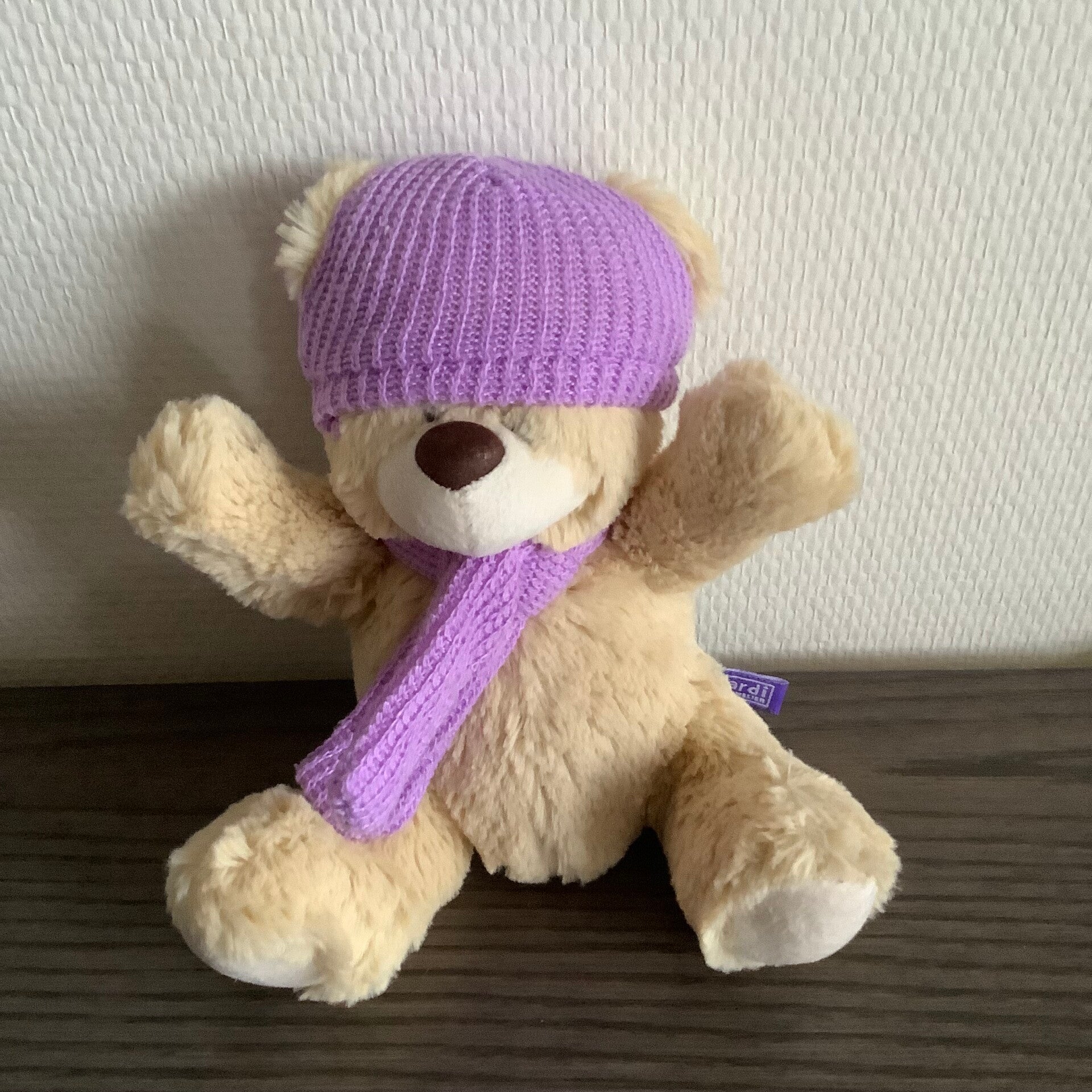 Met muts en sjaal.