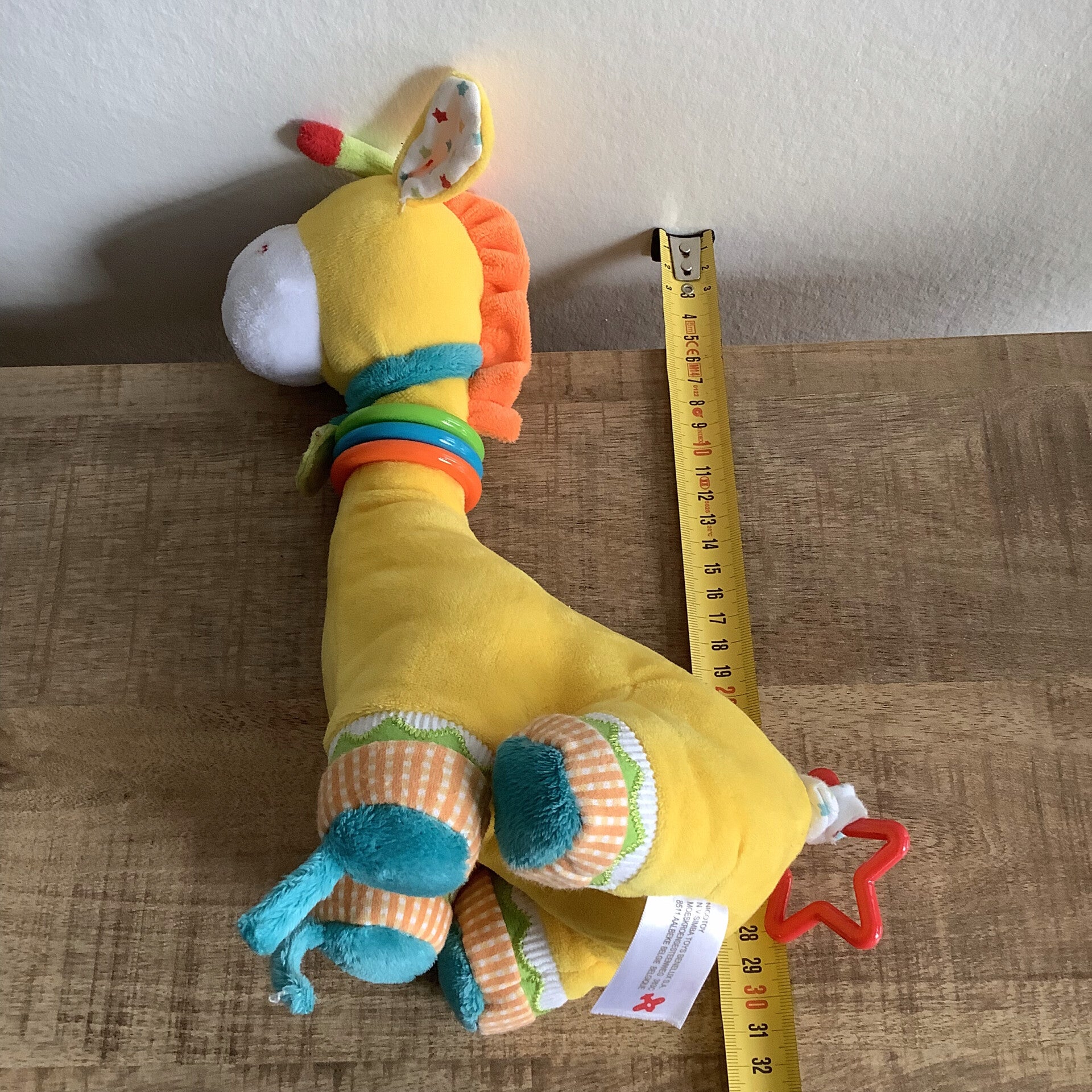 Voorzien van de label.Als je aan de staart trekt, gaat hij kort trillen.Speelringen om de nek.28-30 cm