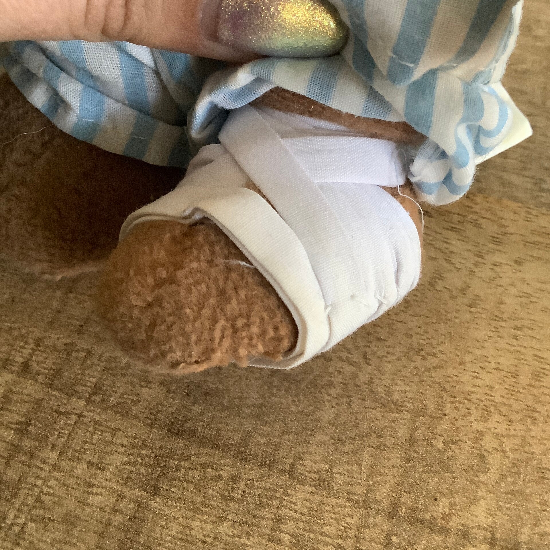 Met verband om zijn poot.