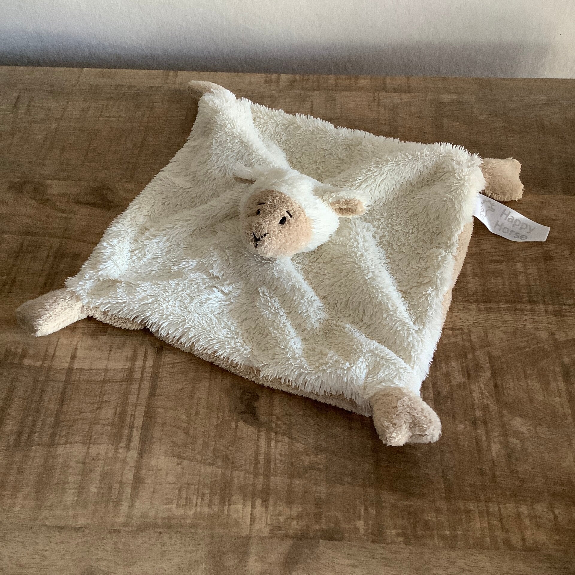 Voorzien van de label. (aan de zijkant van het doekje)Met knisper in de poten en rammeltje in het hoofdje.